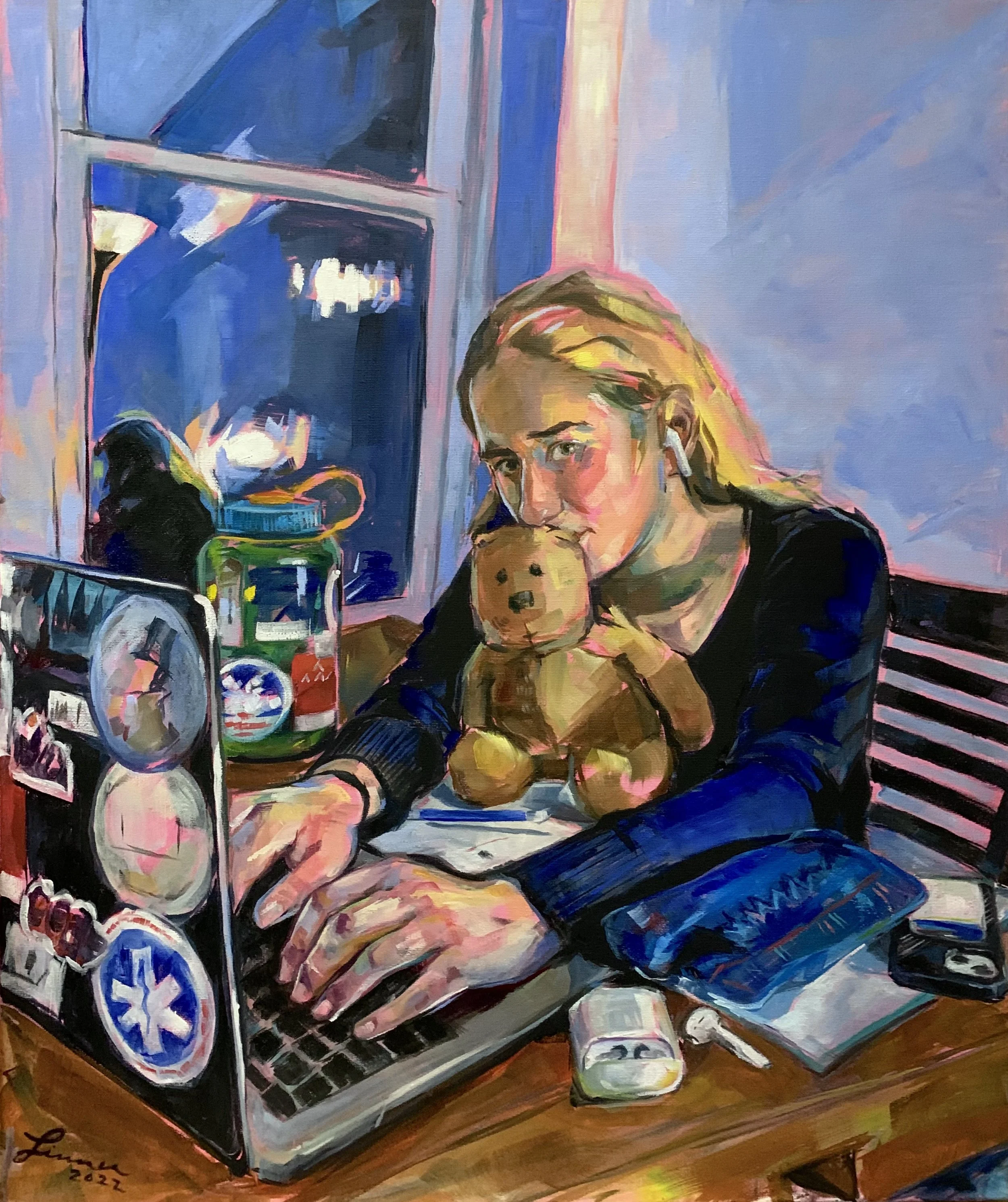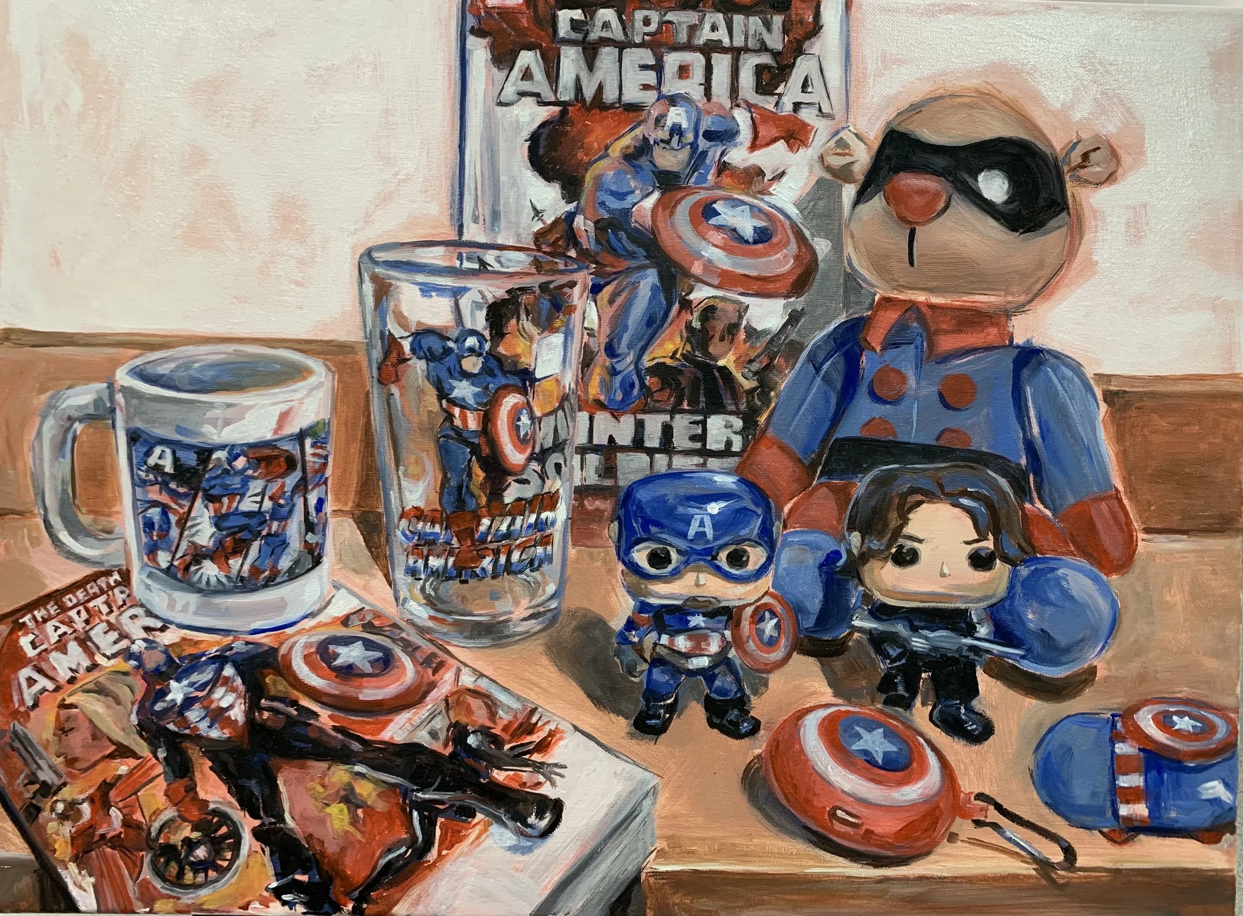 Besides my love for Linnea’s portraits, I was captivated by a piece of her Captain America collection–a play on the “Cabinet of Curiosities” trope with a heartfelt but fan-oriented subject. When I asked her about it, she told me how “I believe in having fun with things. But even though it is a silly subject matter, fan culture is a thing that's taken very seriously. It's something that can get people through dark places, and also let people express things they might not usually be able to explore.” Linnea’s interest in fan culture comes from her own participation. We talked about shared experiences with fandom, especially the artistic output of fandom. When I asked her about the process of creating fanart versus traditional works, she stopped me to address the stigmas around fanart. “I think that idea of ‘progress’ is super interesting,” she started, “it brings up the concept of high and low art and what is overall considered art. Fanart is considered low art that you move on from and replace with high art–but so many great works are fanart or fanfiction. I mean, Good Omens is like Bible fanfiction, Dante’s Inferno is his fanfiction, and some pop art is fanart. I have read so many beautiful works of fanfiction, and seen so many beautiful works of fanart–better than some contemporary art I’ve seen.”